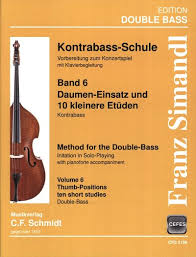 Lagen: Die Kontrabass-Schule von Franz Simandl ist ein äußerst umfangreiches Werk in neun Bänden, das den Musiker von den Grundlagen bis zum ausgebildeten Kontrabassisten begleitet. Der erste Band beschäftigt sich mit den Lagen 1/2-7, Durtonleitern und leeren Saiten.